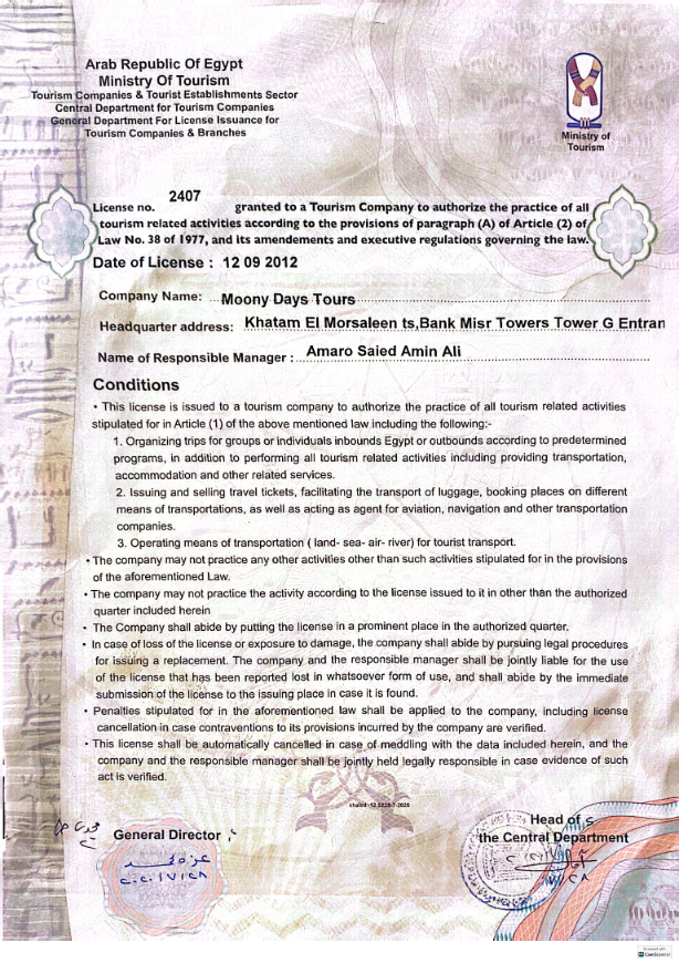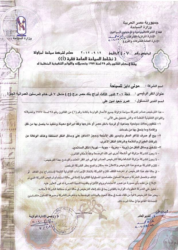 رخصة شركة مونى دايز للسياحة